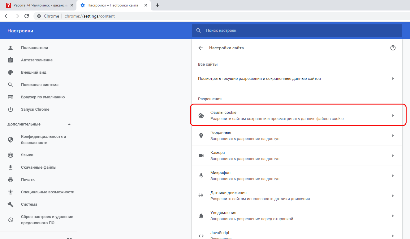6. В появившемся в пункте "Все файлы cookie и данные сайта" в окне в поисковой строке укажите ключевые слова Rabota7;